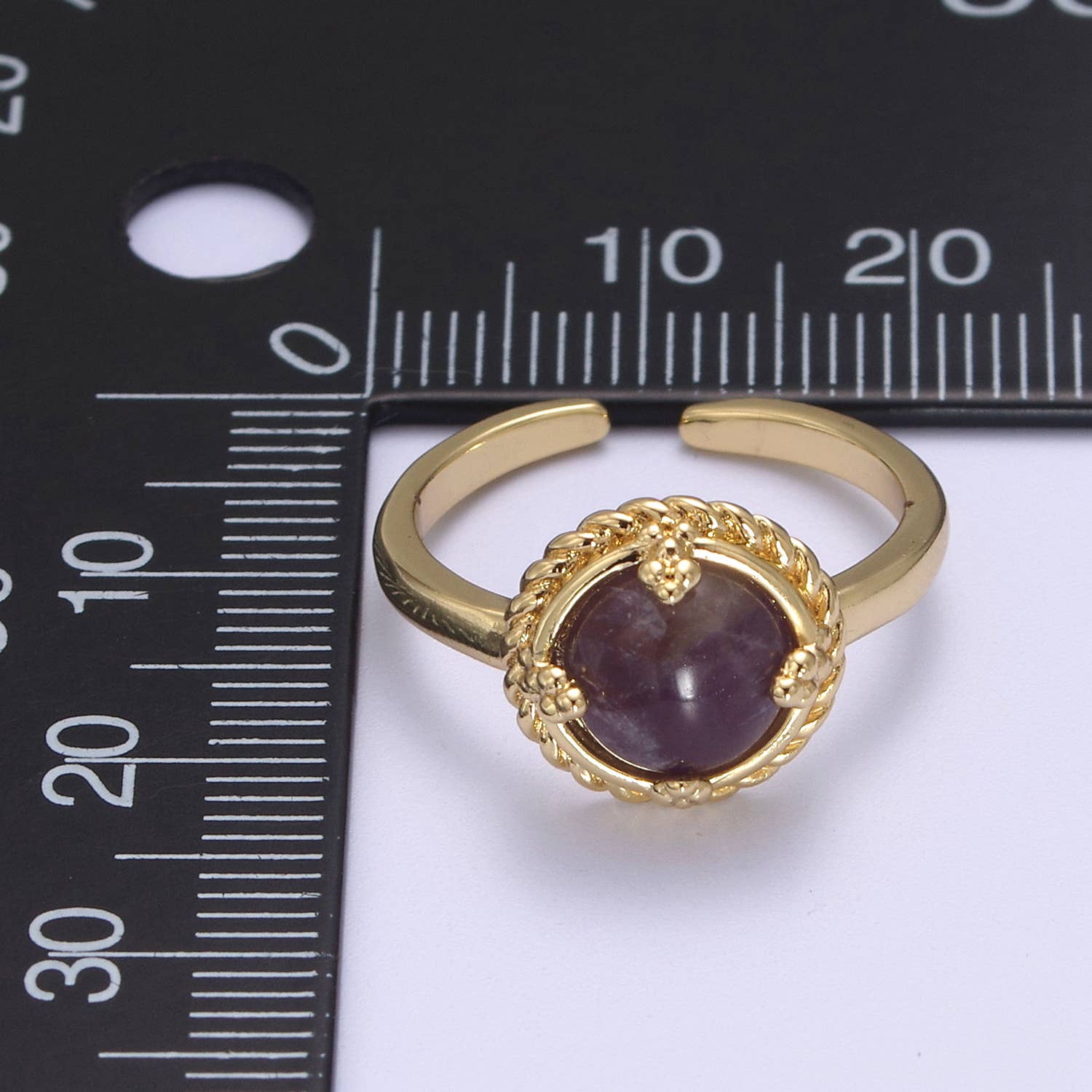 Dark Purple Amethyst Gemstone Gold Adjustable Ring