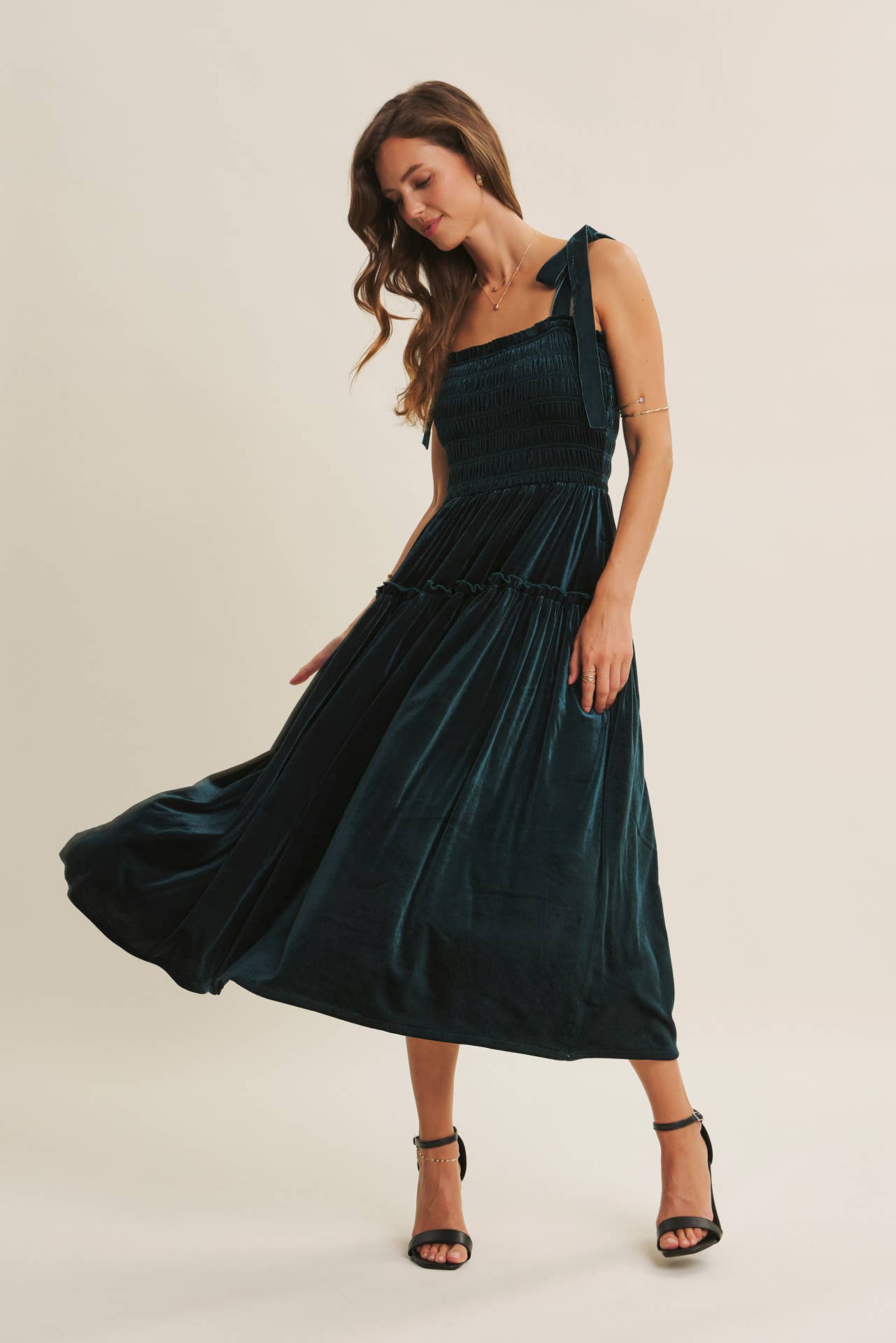 - Velvet midi dress