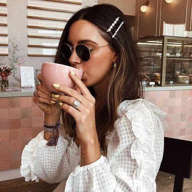 Say "Thanks" with a little glimmer of elegance in this gold pearl hair clip.