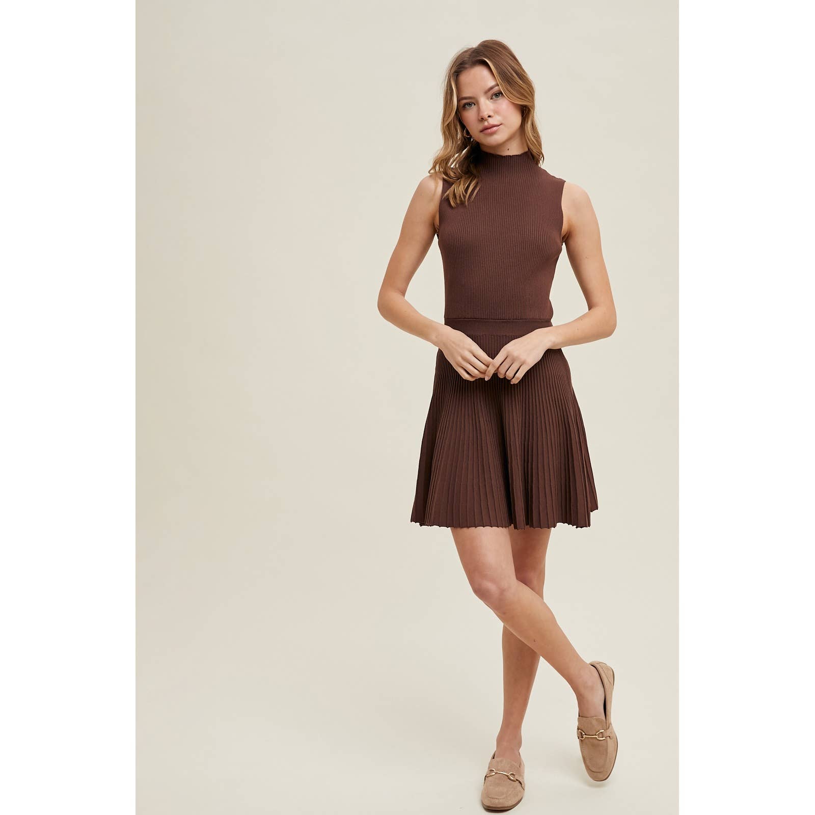 PLEATED MOCK NECK SWEATER MINI DRESS / WL25-11297