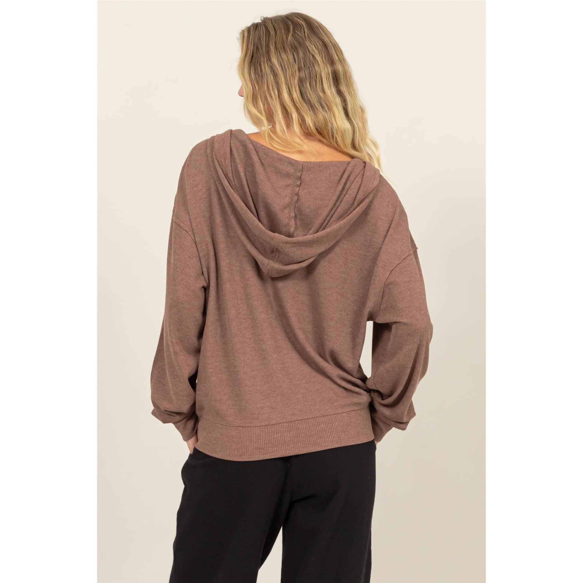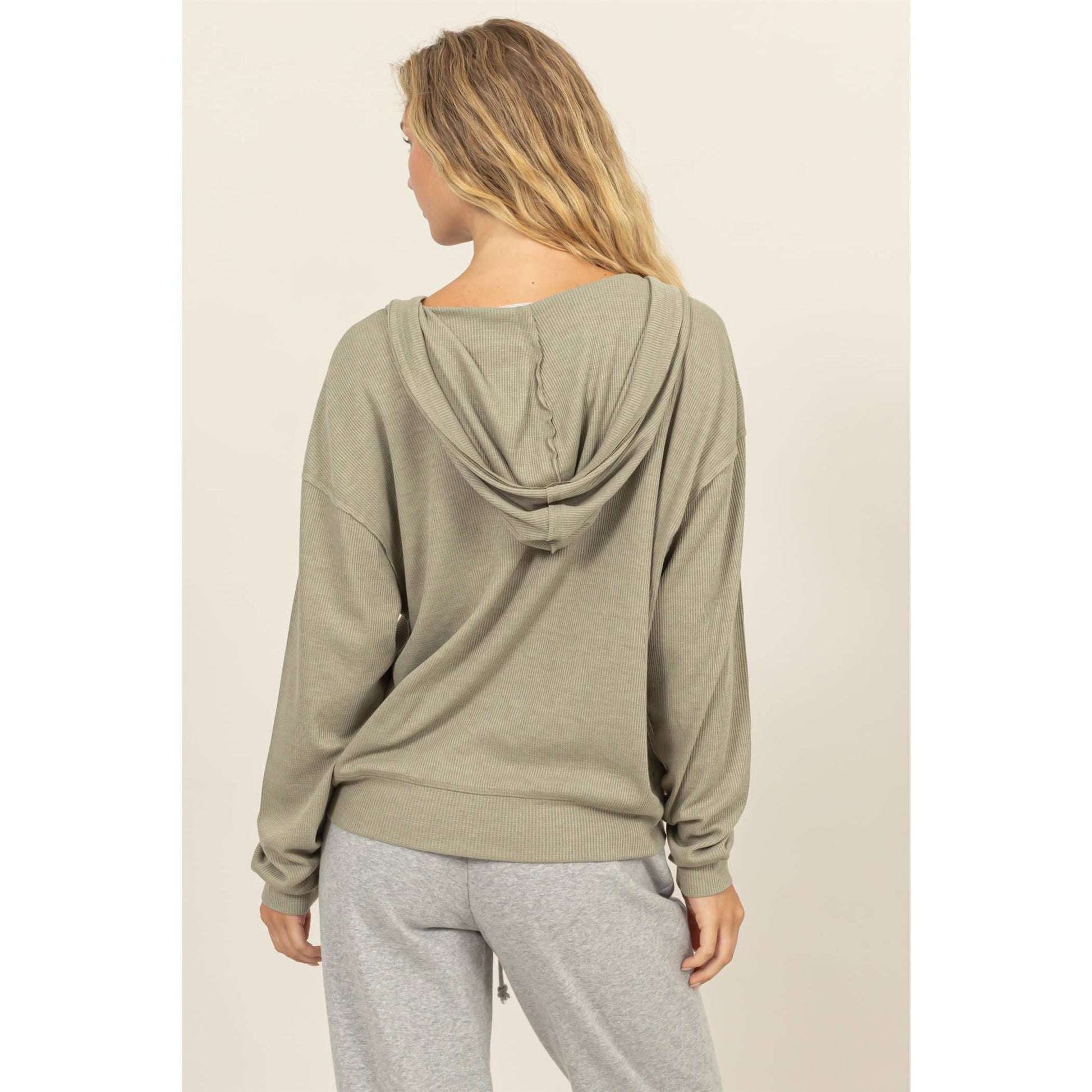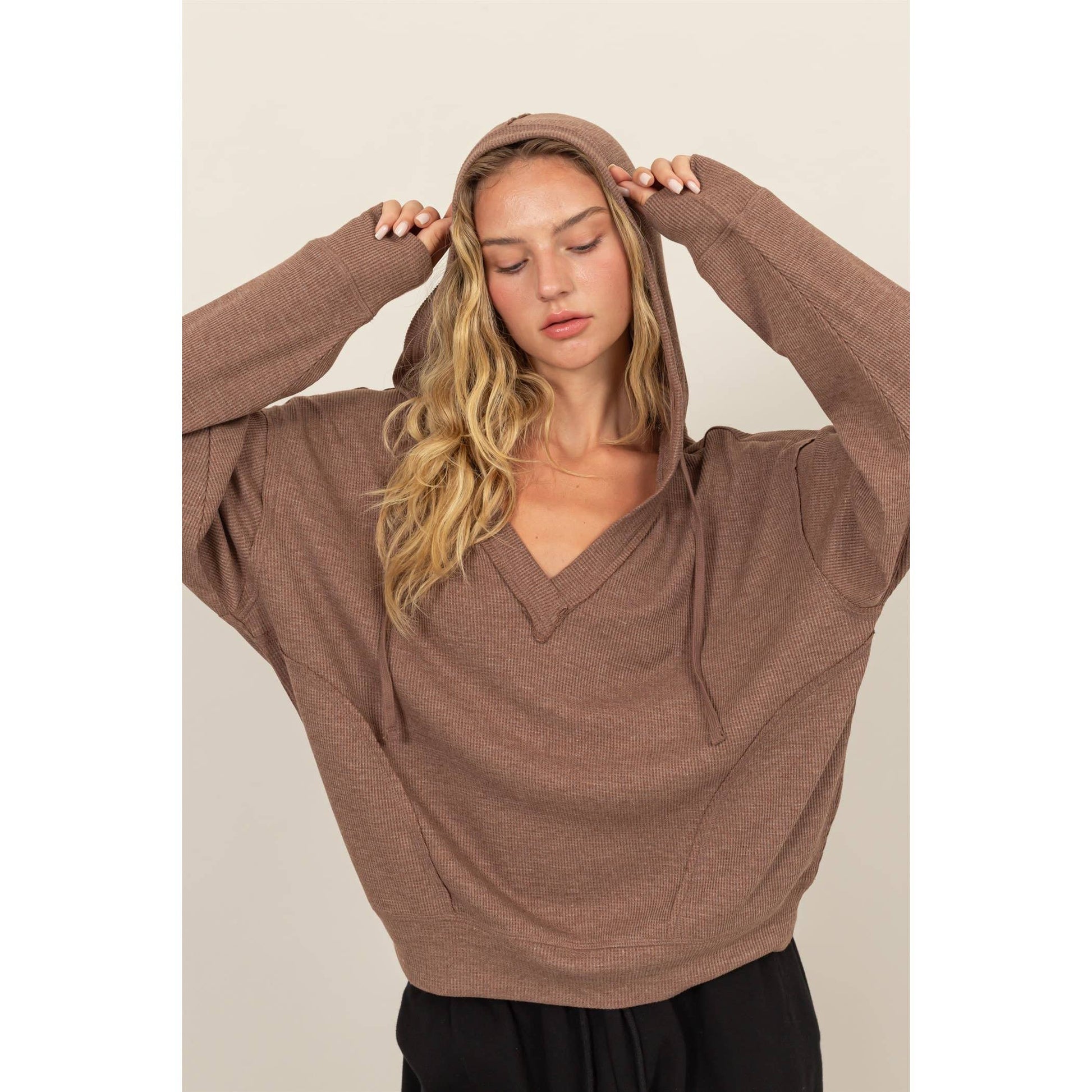 Relaxed Fit Notch Neck Ribbed Hoodie