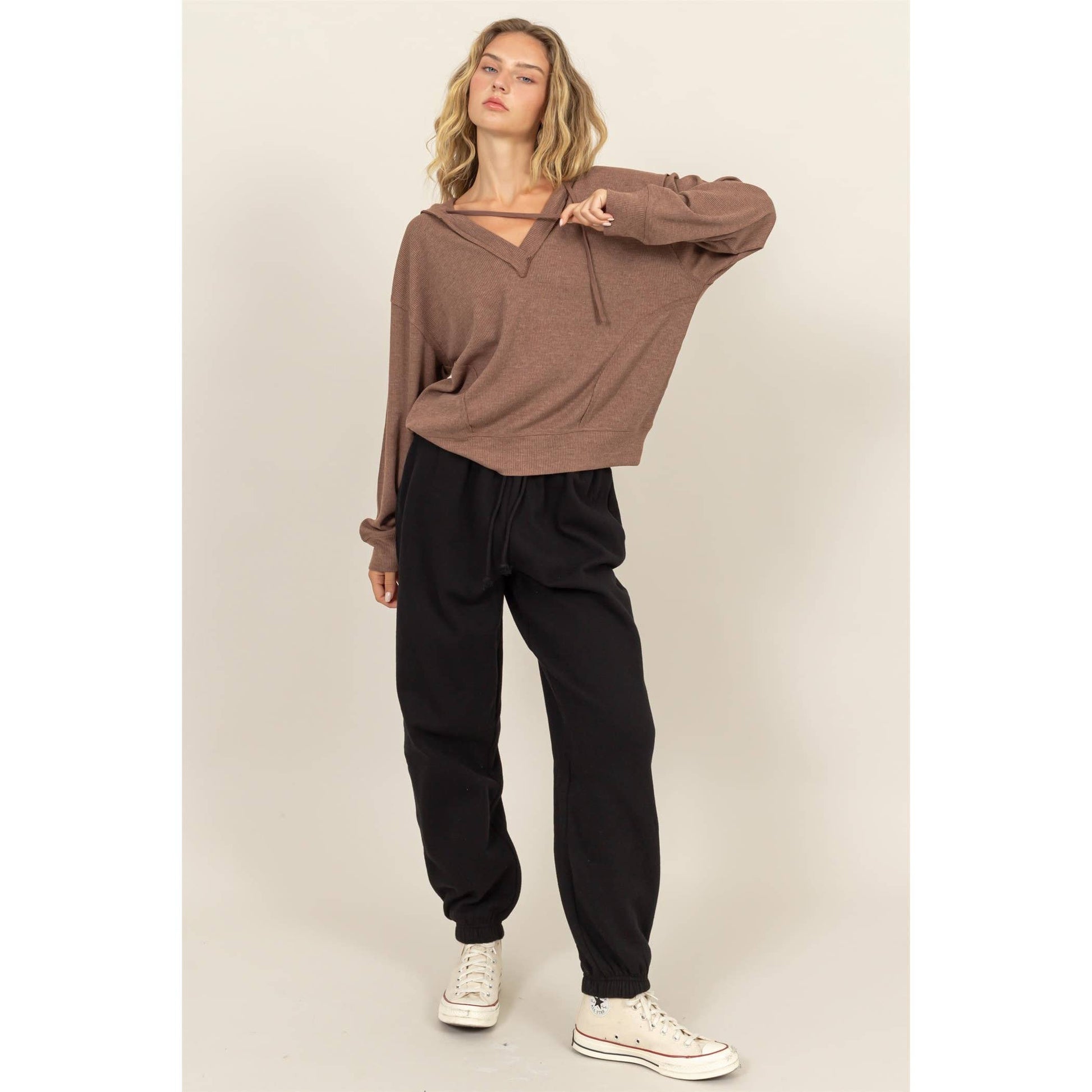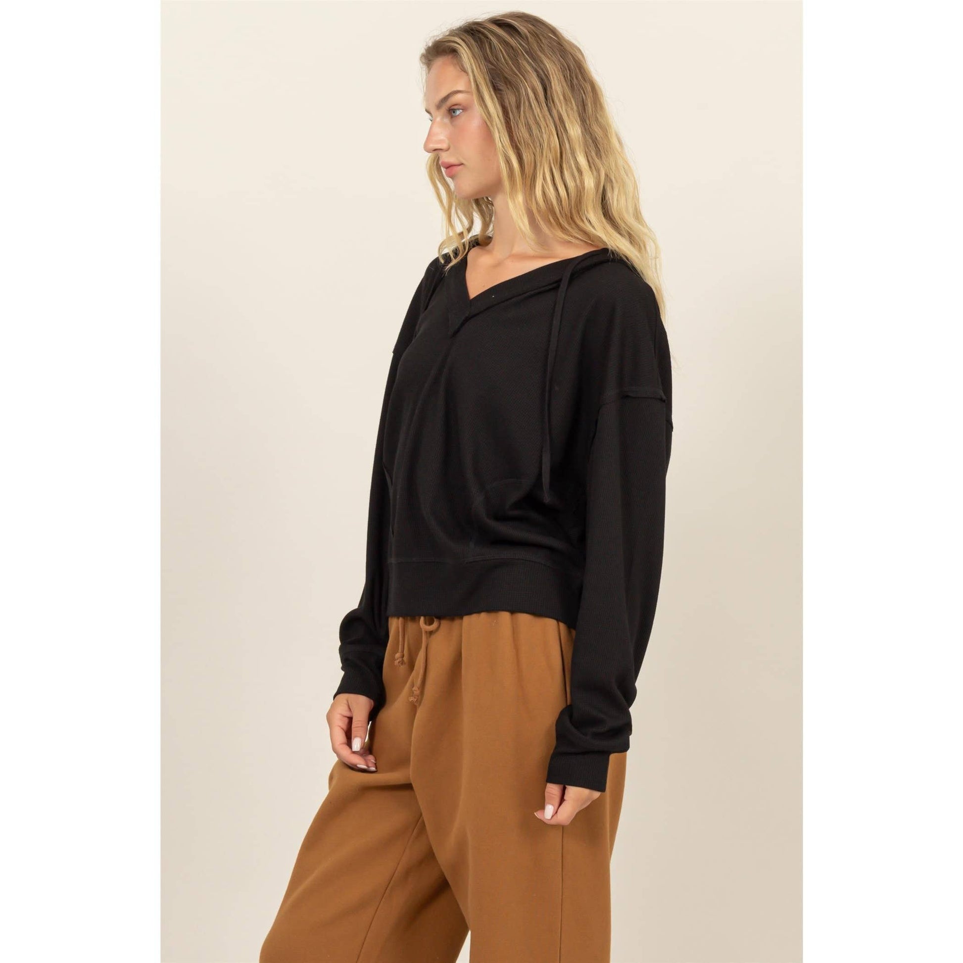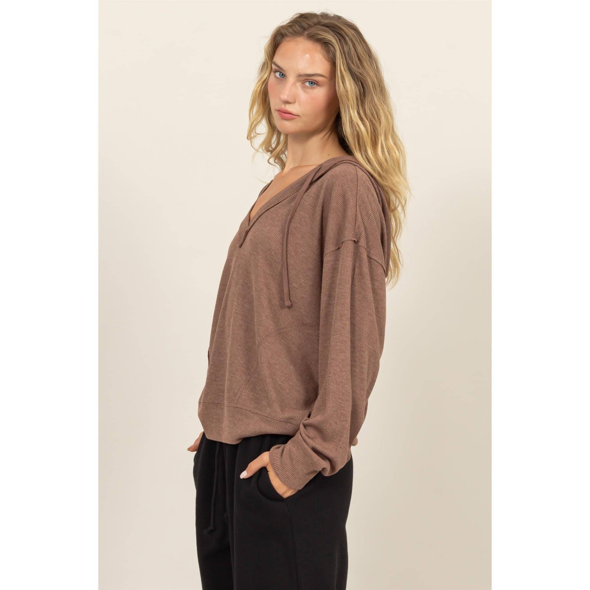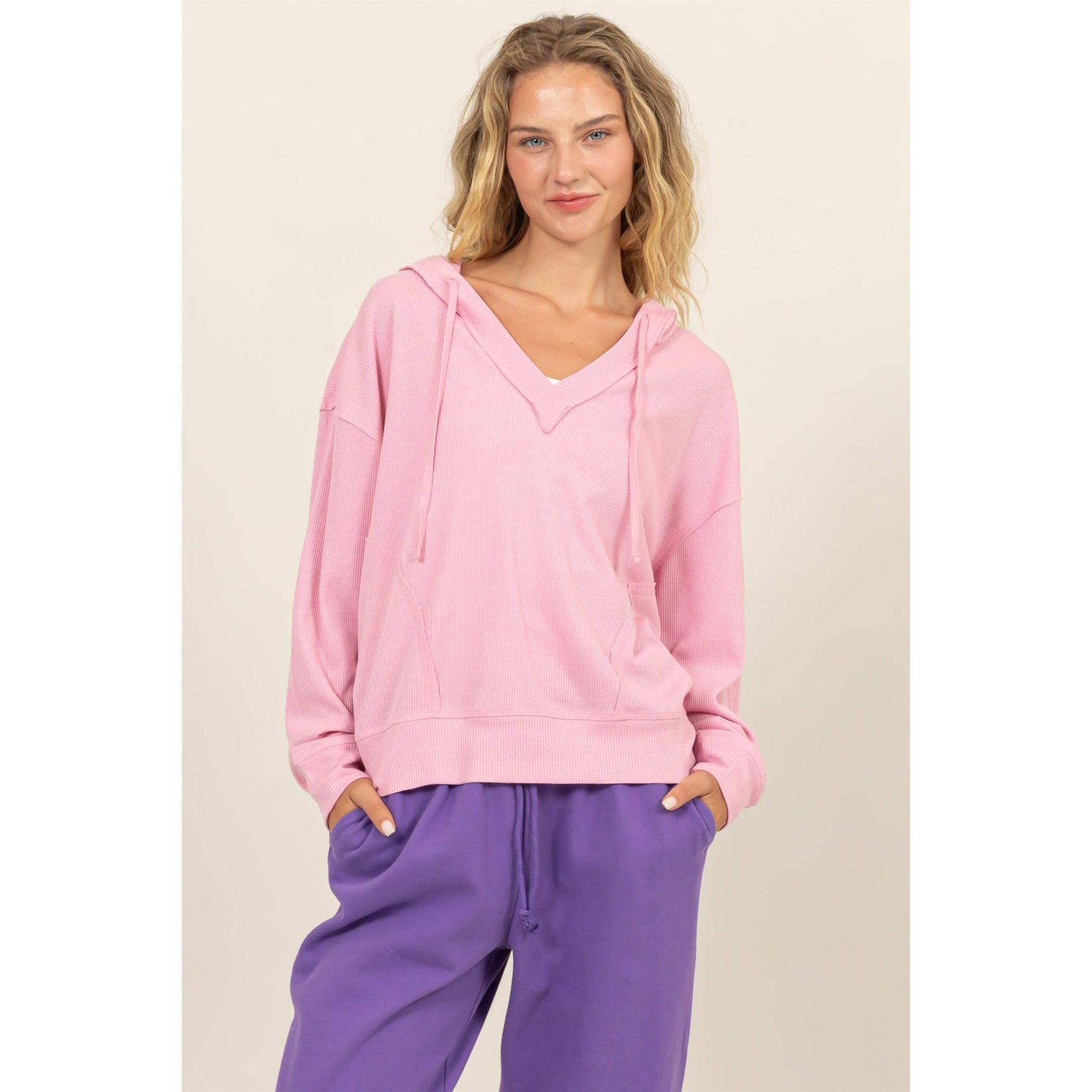 Relaxed Fit Notch Neck Ribbed Hoodie