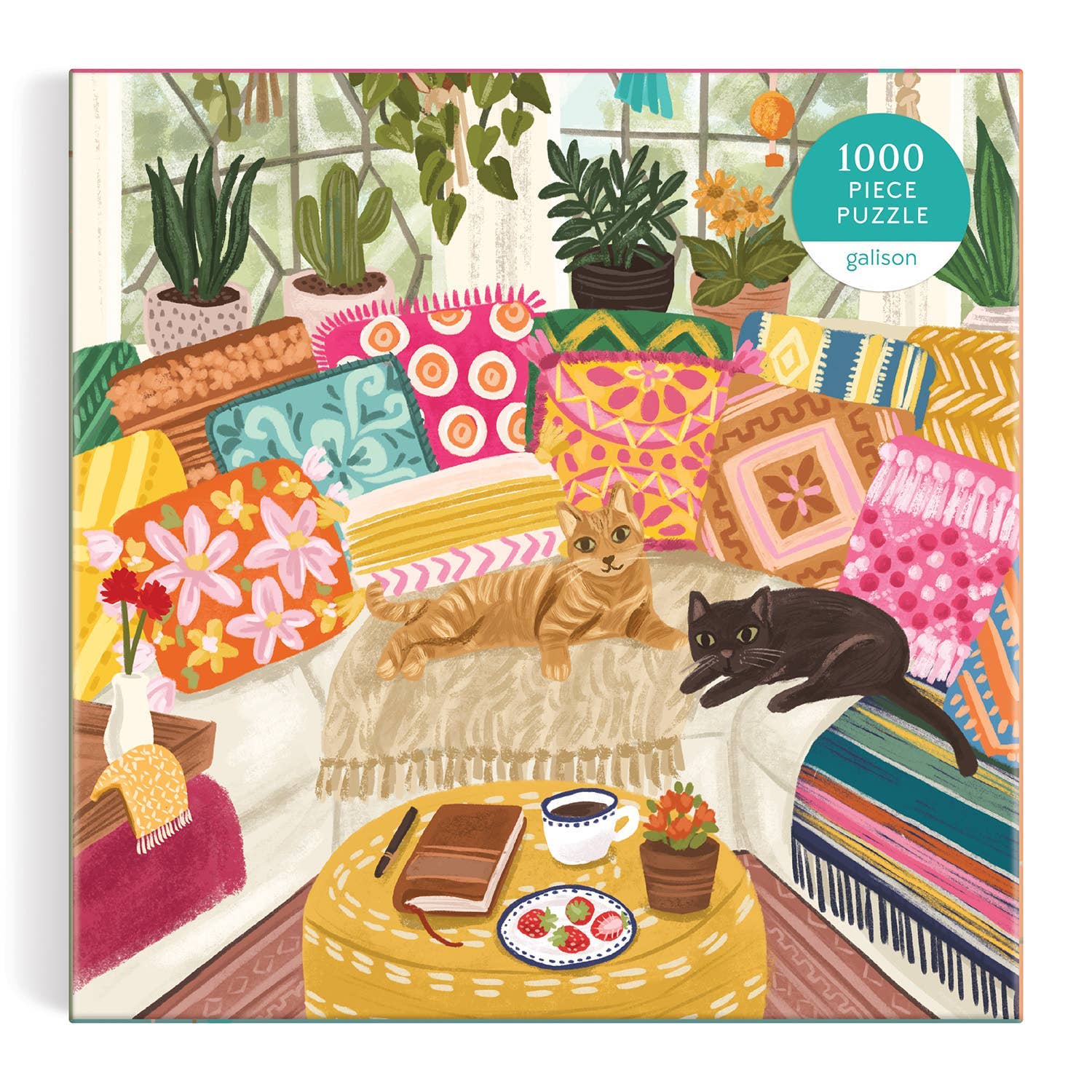Galison’s Serenity Meow 1000 Piece Puzzle is a snapshot of coziness featuring two cats nestled together in a haven of handcrafted textiles and houseplants. Galison puzzles are packaged in matte-finish sturdy boxes, perfect for gifting, reuse, and storage.