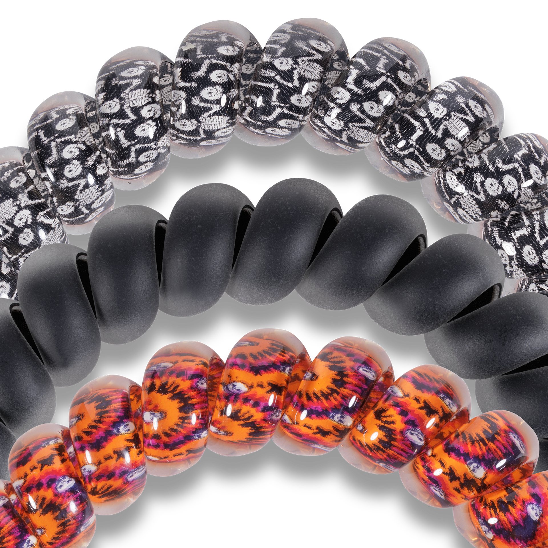 Hold your hair and enhance your style with our new Halloween TELETIES. The strong grip, no rip hair tie that doubles as a bracelet. Strong, pretty and stylish, TELETIES are designed to withstand everyday demands while taking your look to the next level.