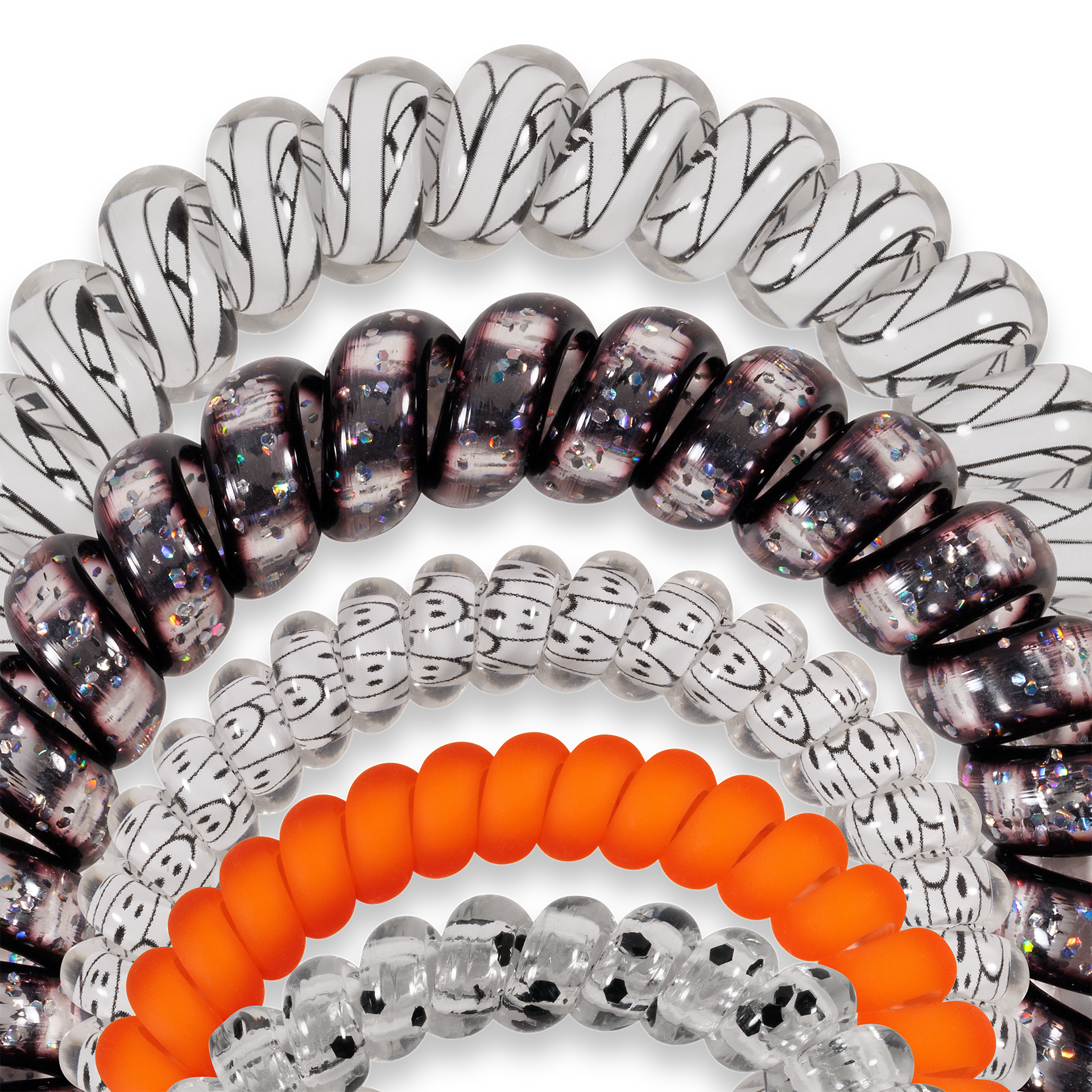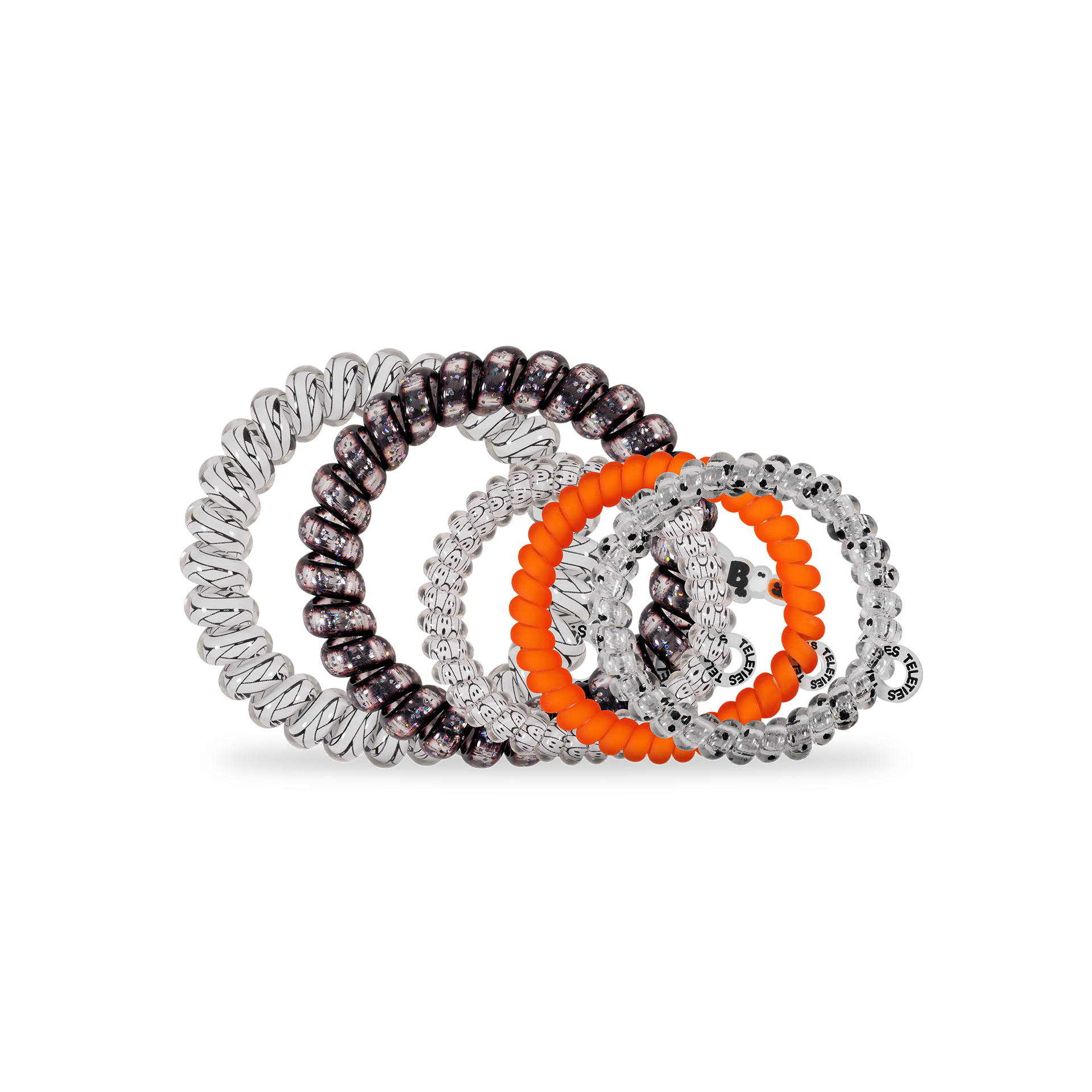 Hold your hair in place with ease and style! Mummy Knows Best Mix Pack Hair Ties in Black and Orange offer a strong grip without damage, doubling as a stylish bracelet when not in use. Your new favorite hair essentials all year round.