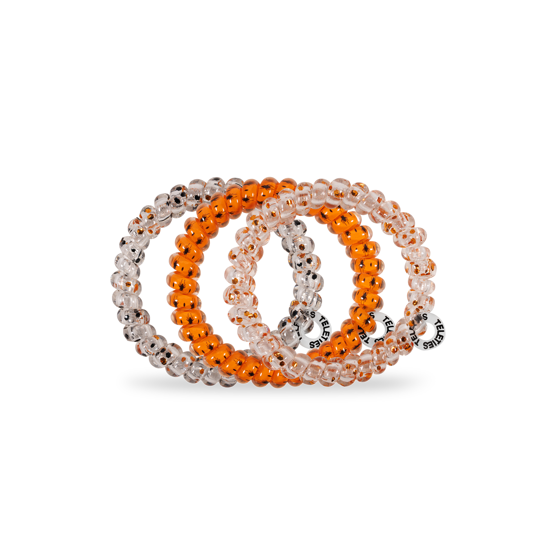 Spooky Sparkles Small Hair Ties in Black and Orange offer a strong grip without damage, doubling as a chic wrist accessory when not in use. Your new favorite hair essentials all year round.