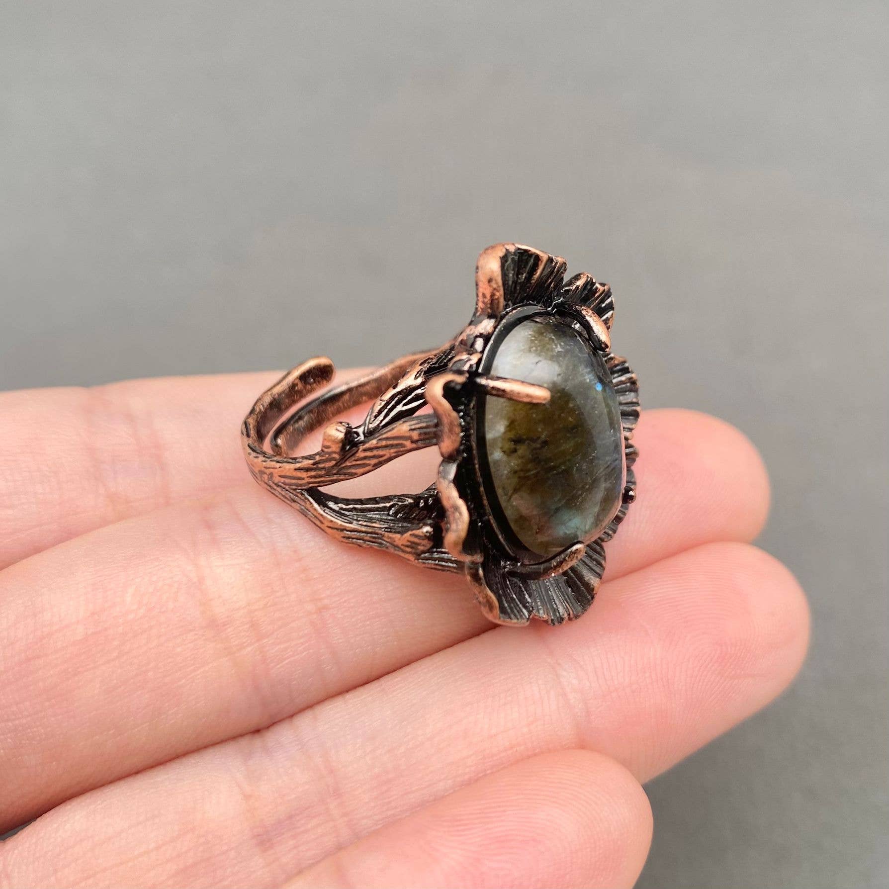 Vintage Anemousite Inlaid Bronze Flower Shape Ring - CS