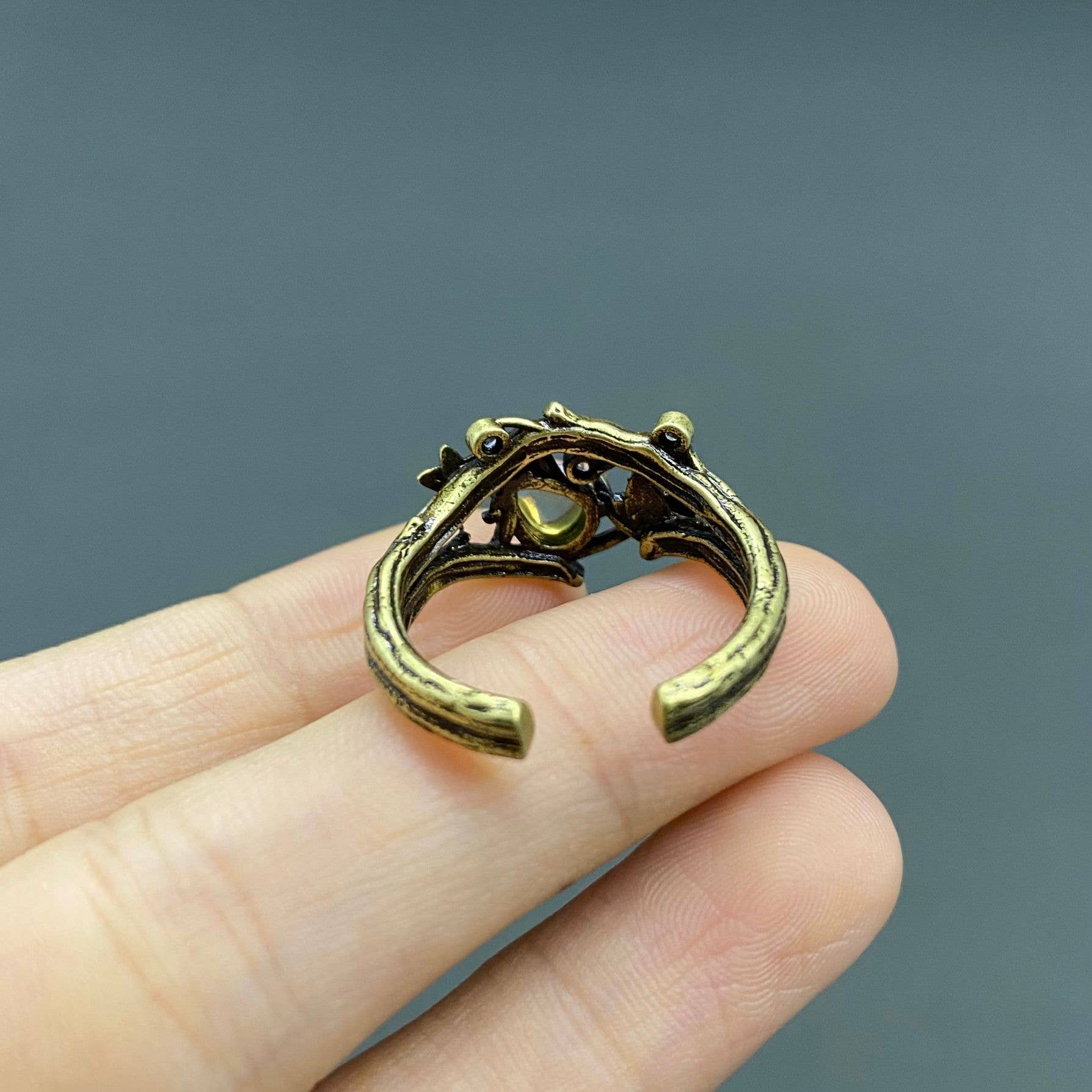 Vintage Moonstone Foliage Bronze Adjustable Ring
